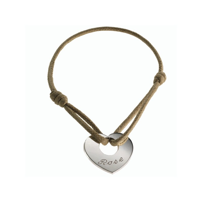 Elégant bracelet en argent que l'on porte " a coeur de peau".Personnalisez votre bracelet par une gravure et la couleur du cordon de votre choix. Une idée de cadeau personnalisé originale.