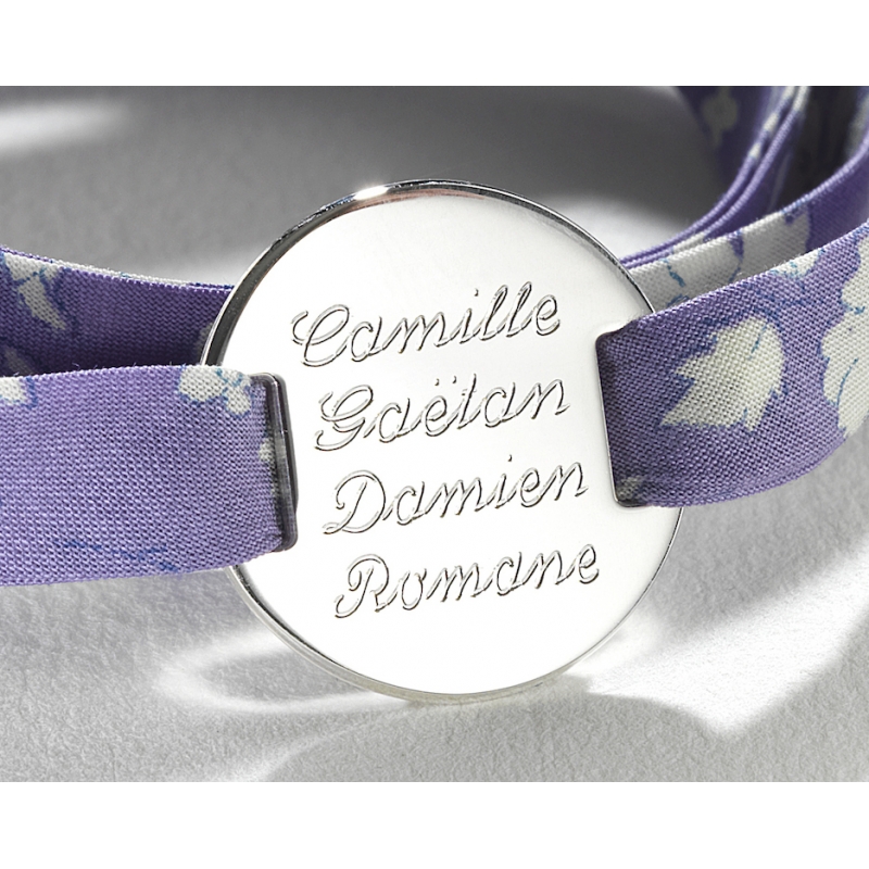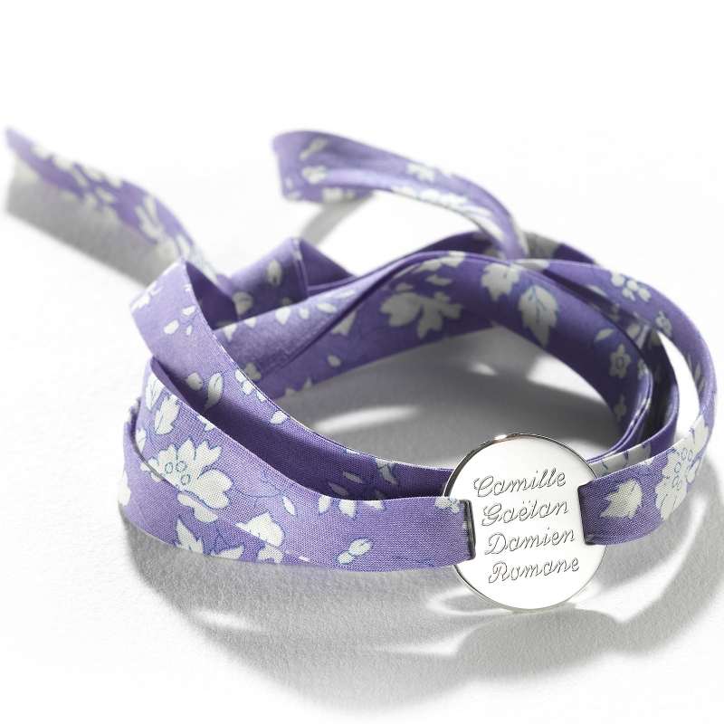 Bracelet en Liberty très tendance. Personnalisez votre bijou par une gravure et le Liberty de votre choix.