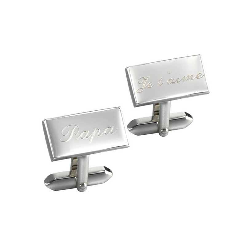Très tendance, les boutons de manchette Léonard argentés à personnaliser avec vos prénoms ou messages.10 Caractères sont gravables sur chaque bouton.Matière : Rhodium.Dimensions : 2 x 1 cm.