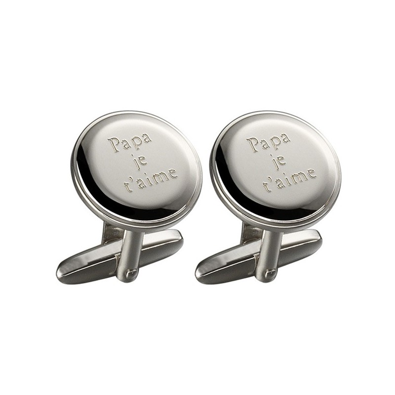 Très tendance, les boutons de manchette Octave argentés à personnaliser avec vos prénoms ou messages.10 Caractères sont gravables sur chaque bouton.Matière : Rhodium.Dimensions : diamètre 1.7 cm.