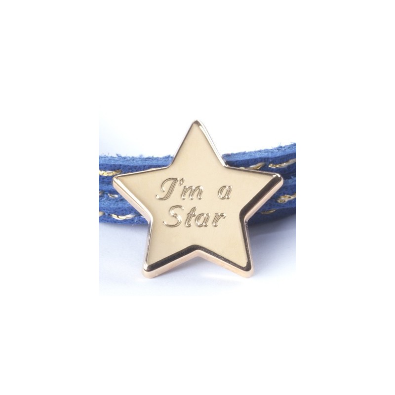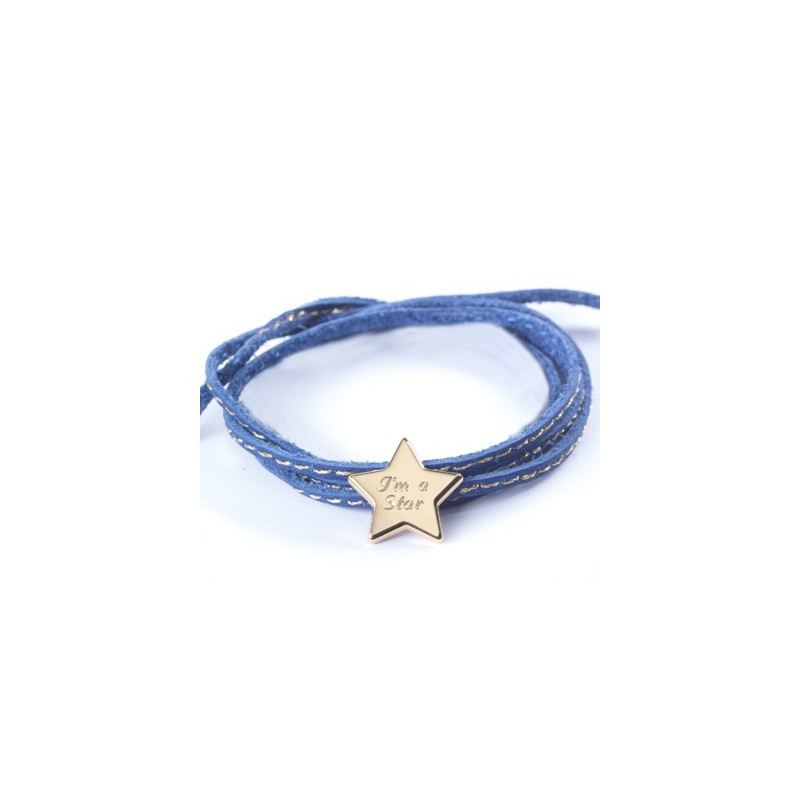 Bracelet en cuir surpiqué d'un fil doré avec sa médaille en plaqué or.