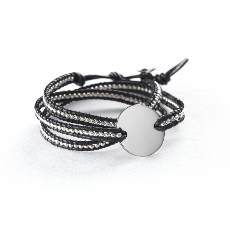 Matière : Argent et CuirTaille bracelet : 3 attaches à 49, 51 ou 53 cm.Diamètre médaille : 2 cm.