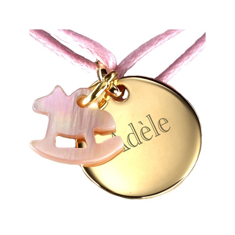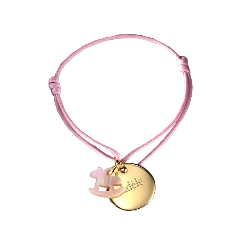 Tendre et raffinée la collection Kids fera le bonheur des petits et des plus grands !Personnalisez le bracelet Kids par une gravure, la couleur du cordon et la nacre de votre choix.Matière : Plaqué or & Nacre.Dimensions : diamètre 1.5 cm.