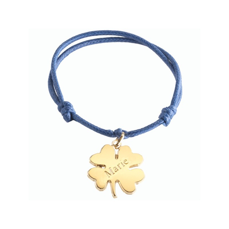 Le Trèfle Porte Bonheur qui ne vous quitte plus!Personnalisez votre bracelet Lucky par une gravure et la couleur de cordon de votre choix.Matière : Plaqué or.Dimensions : 2 x 2 cm.