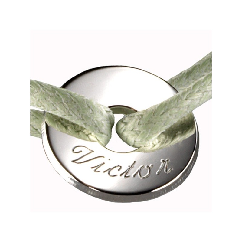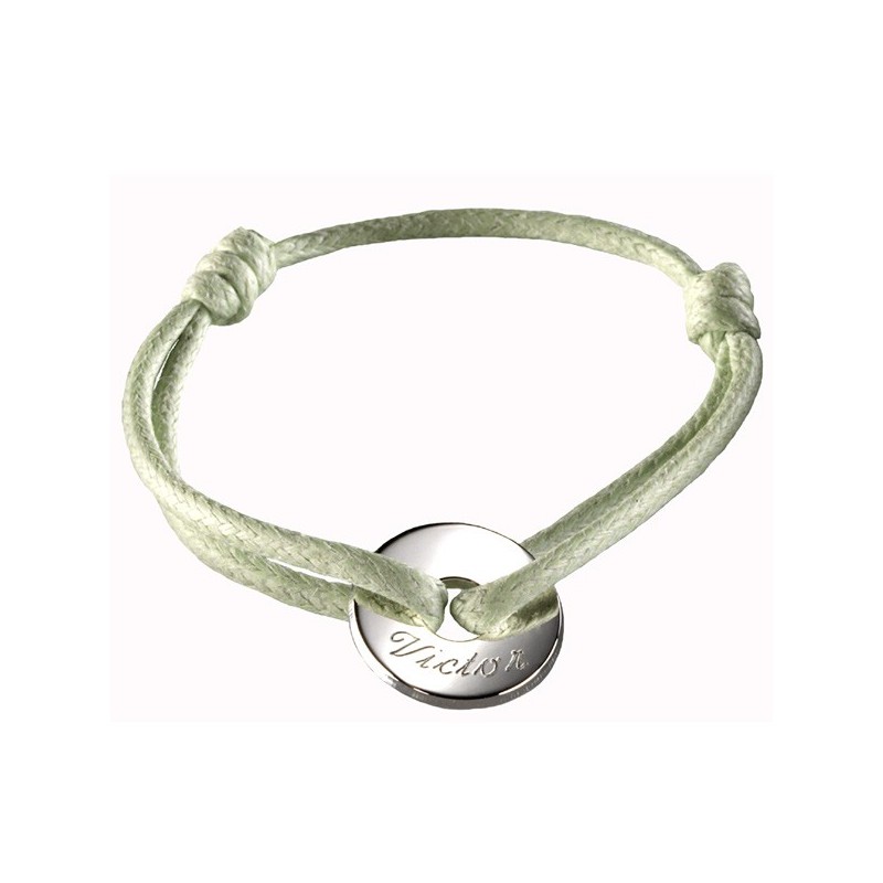 Mon tout premier bijou! Adorable bracelet en argent aussi bien porté par bébé dès sa naissance que par ses frères et soeurs. Personnalisez son premier bijou par une gravure et la couleur du cordon de votre choix.