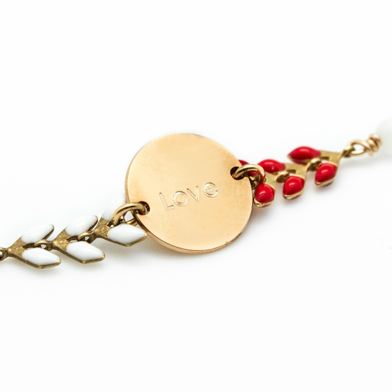 Découvrez le bracelet chaine et émail plaqué or personnalisable. Gravé et monté dans notre atelier Lyonnais, il offre un style antique avec un look moderne. Choisissez la couleur de l'émail qui se mariera avec le blanc et gravez y le texte de votre choix. Le bracelet idéal pour faire plaisir ou se faire plaisir.