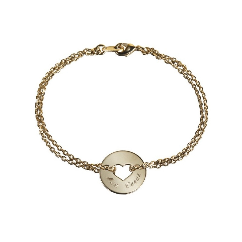 1. Tout en finesse le bracelet Poème coeur est monté sur une chaine. En Plaqué or, Personnalisez votre bracelet par une gravure de votre choix.