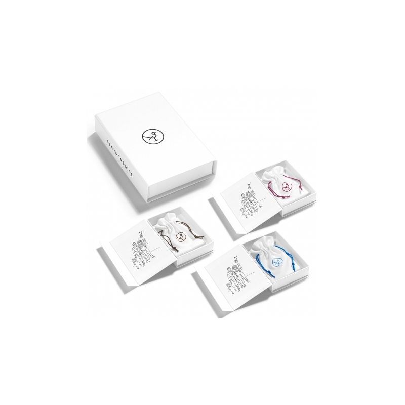 Composition du coffret : 2 Pochettes Bijoux en coton -1 Boîte cadeaux rigide - 1 Sac à lannières.