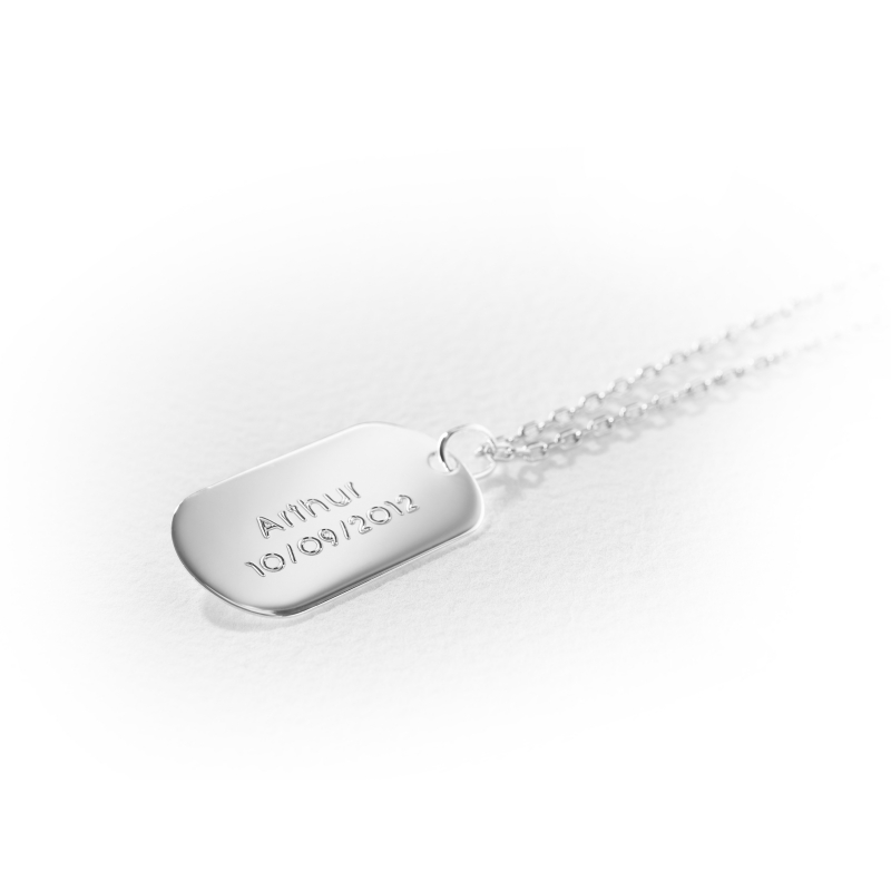 Une idée de cadeau originale pour un enfant, ne cherchez plus?! Offrez lui un collier le Téméraire à personnaliser par la gravure sur notre site. Le collier est constitué d'une plaque en argent 925 et de sa chaine de 50cm (en Argent)