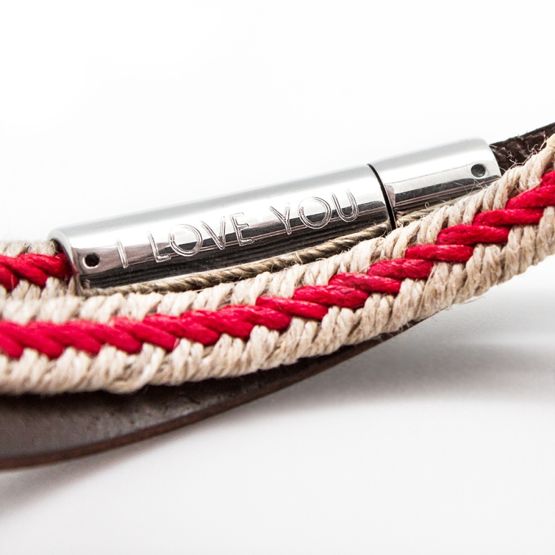 Le bracelet en cuir et corde personnalisé est à la foit sport et décontracté. Il peut se porter en toute circonstance, et son style marin vous rappelera l'odeur iodée des vacances en bord de mer. En personnalisant le fermoir au verso vous offrirez un cadeau unique à la gravure discrète.