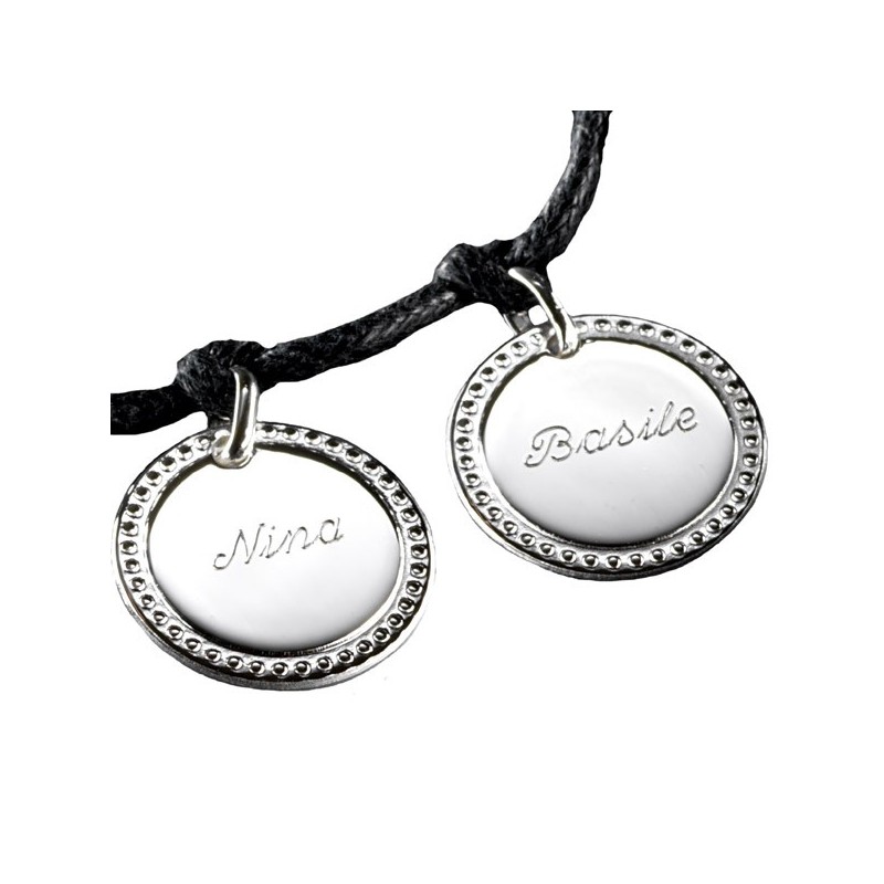 Original et unique le bracelet Milady fera son effet! Personnalisez votre bracelet en choisissant le nombre de médailles, leur gravure et la couleur du cordon de votre choix.Matière : Argent.Dimensions : diamètre 2 cm.
