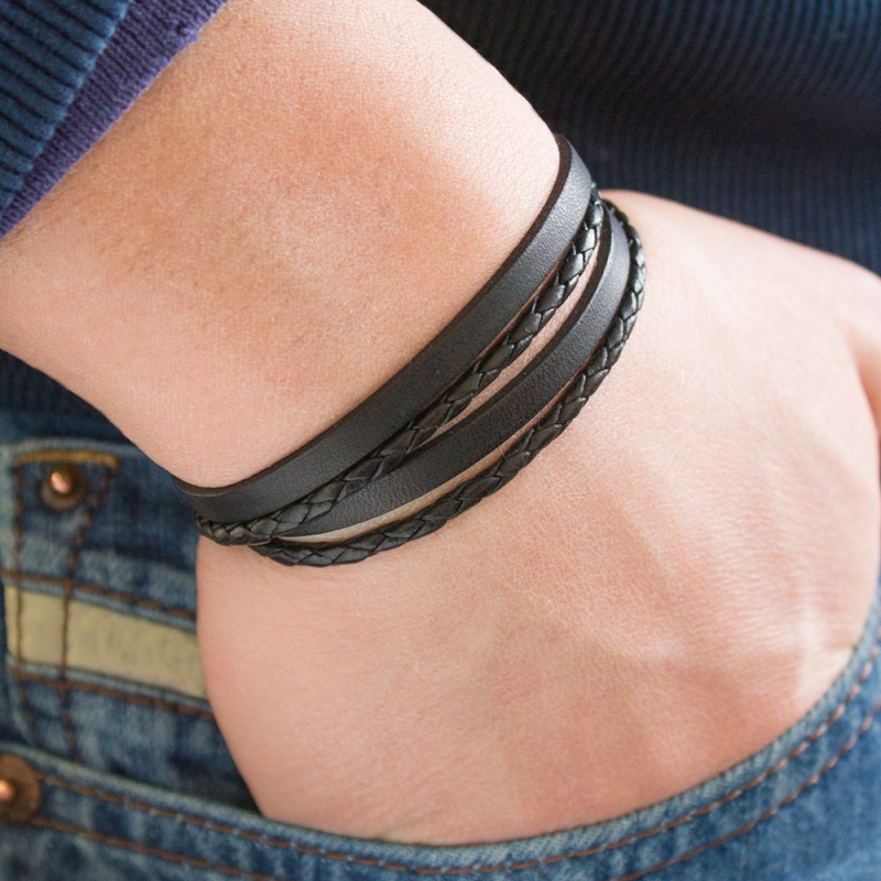Le bracelet double tour en cuir possède l'originalité d'allier cuir tressé et cuir en lanière. Déclinable en noir, marron et cognac, il s'adaptera à tous les goûts. Un bracelet chic et tendance que vous pourrez porter en toute circonstance. En personnalisant le fermoir au verso vous offrirez un cadeau unique à la gravure discrète.