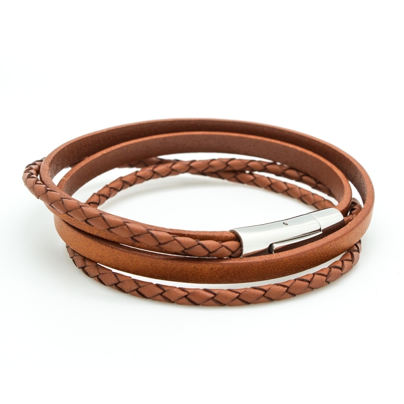 Le bracelet double tour en cuir possède l'originalité d'allier cuir tressé et cuir en lanière. Déclinable en noir, marron et cognac, il s'adaptera à tous les goûts. Un bracelet chic et tendance que vous pourrez porter en toute circonstance. En personnalisant le fermoir au verso vous offrirez un cadeau unique à la gravure discrète.