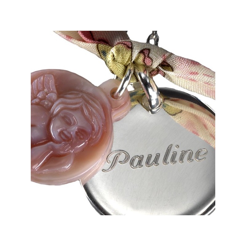 Le Pendentif Ange est monté sur une chaîne en Argent avec un ruban en Liberty et une necre "ange Gabriel".