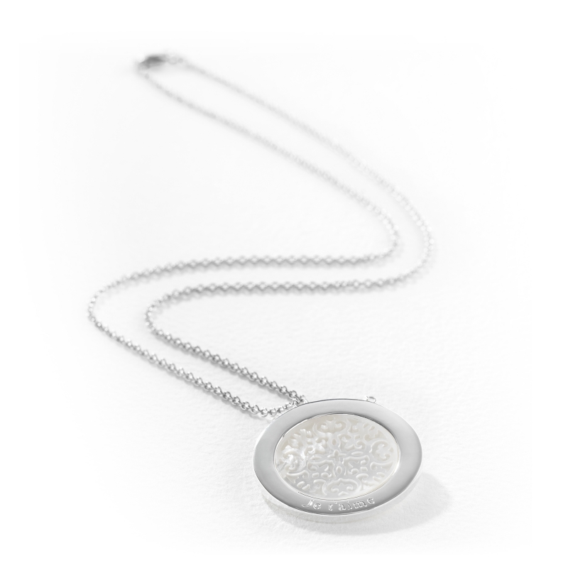 Matière : Argent 925 et nacreDimension chaîne: 53 cmDimensions médaille: 30 mm de diamètre