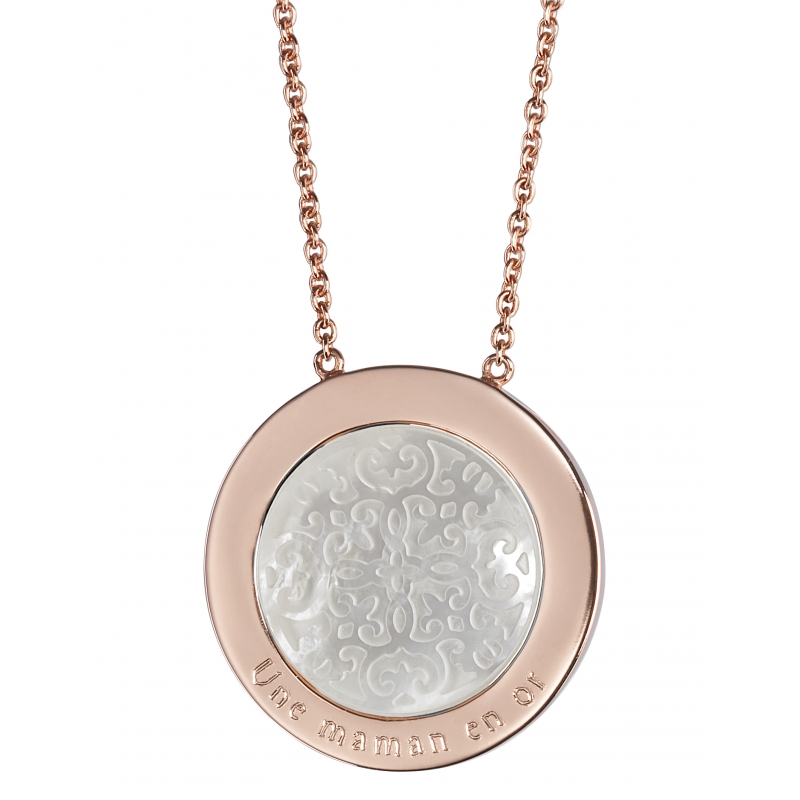 Matière : Plaqué Or roseDimension chaîne: 53cm (Plaqué Or)Diamètre Médaille: 30 mm