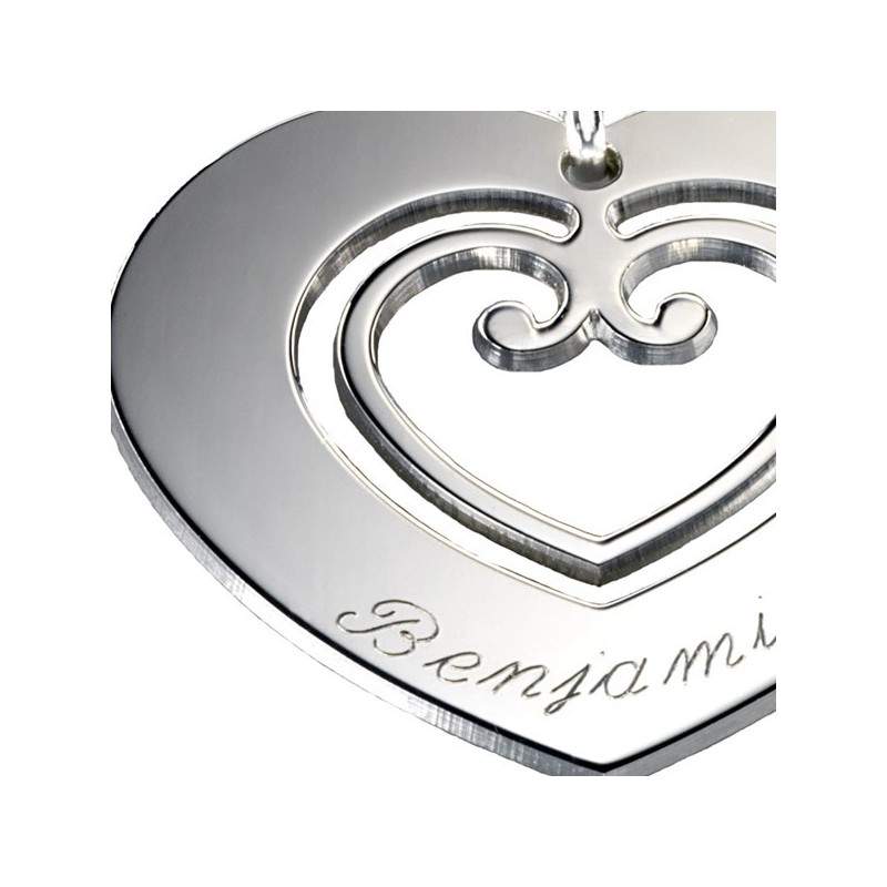 Elégant et rafiné le pendentif Coeur Sacré est le symbole de l'amour! Il est monté sur une chaîne en argent et peut se personnaliser par une gravure.Matière : Argent.Chaîne : 50 cm.Dimensions : 4 x 3.5 cm.