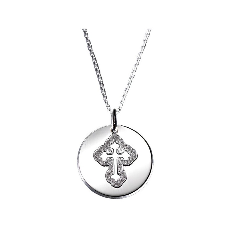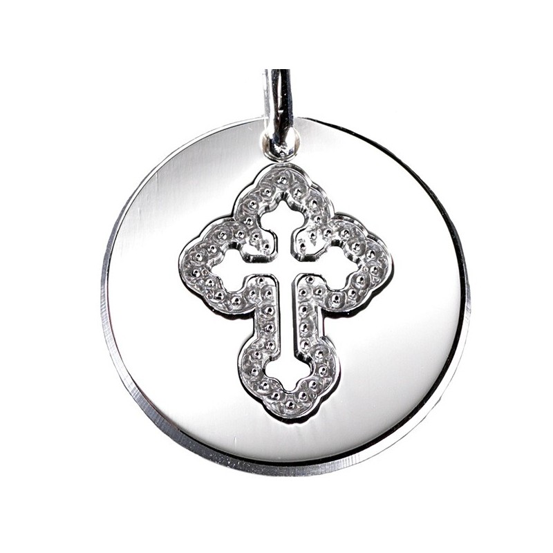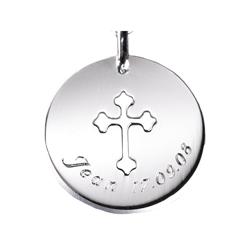 Médaille croix céleste ajouré d'une magnifique croix céleste en Argent.Personnalisez le pendentif "Croix Céleste" par une gravure.Matière : Argent.Chaîne : 42 cm.Diamètre : 2 cm.