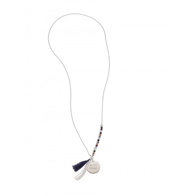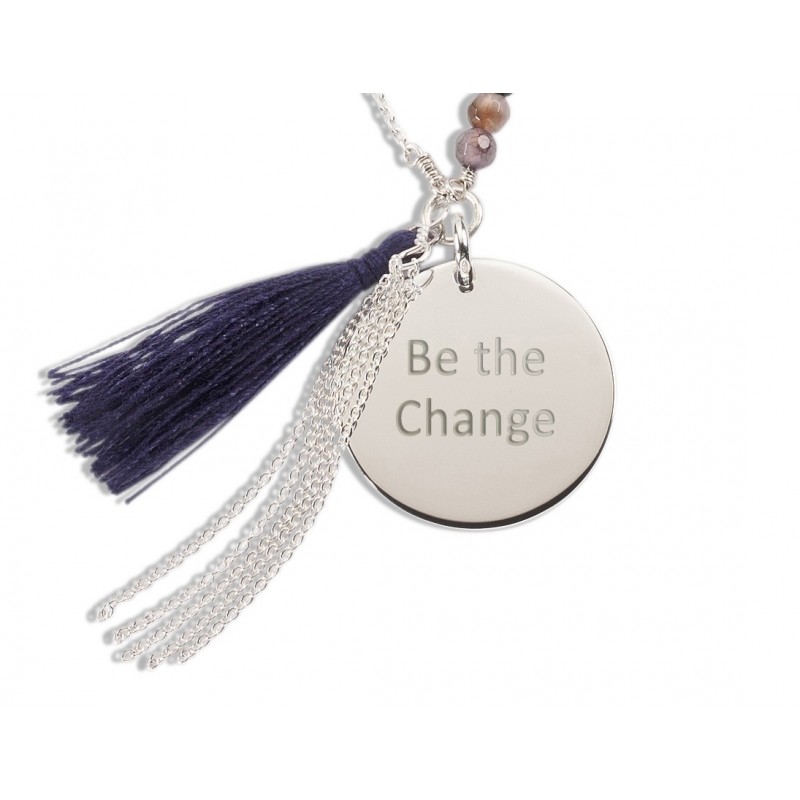 Ethnique et chic le sautoir Bahia personnalisé est un hymne au voyage. Monté sur une chaîne en argent, le sautoir est composé d'Amethyste, d'un pompon et d'une médaille personnalisée par une gravure de votre choix.