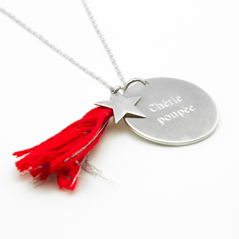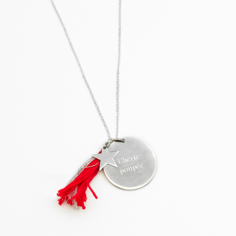 La médaille en argent est personnalisée avec la gravure de votre choix : mots doux, prénoms, dates...