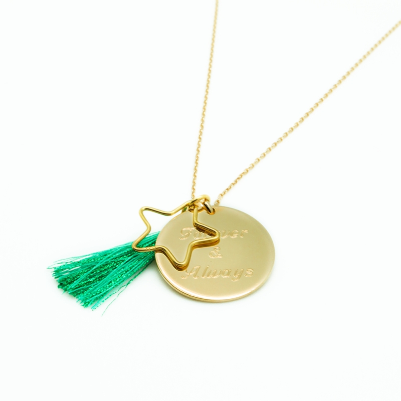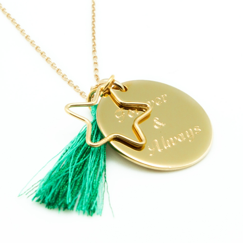 La médaille en plaqué or est personnalisée avec la gravure de votre choix : mots doux, prénoms, dates...