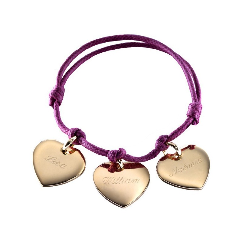 Personnalisez le bracelet "Petits Coeurs" en choisissant le nombre de Coeurs, leur gravure et la couleur du cordon de votre choix.