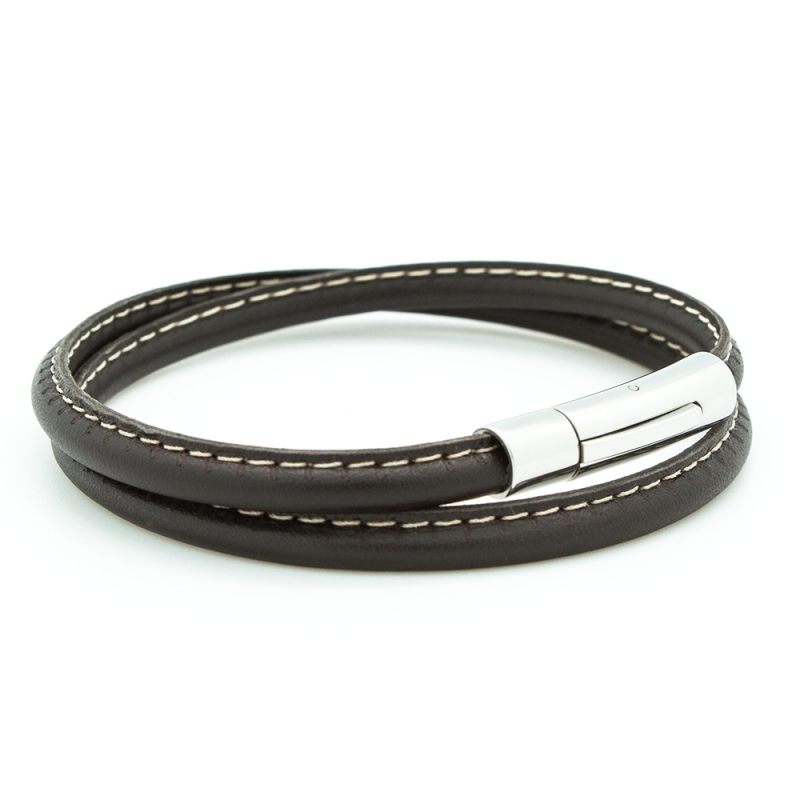 Le bracelet double tour en cuir surpiqué est déclinable en 4 couleurs. Il est le bijou pour homme par excellence. Discret et élégant il ne quittera plus votre poignet. En personnalisant le fermoir au verso vous offrirez un cadeau unique à la gravure discrète.